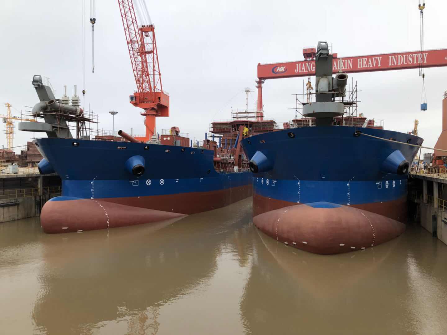 海新重工兩條8000方耙吸式挖泥船下水