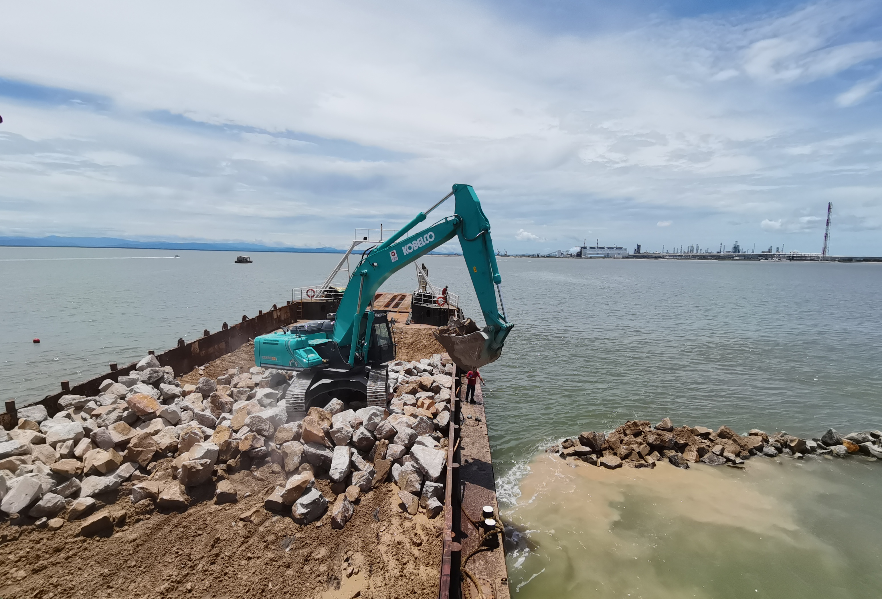 文萊本地的砂石料供應能力嚴重不足,從剛開始的拋砂到現在的拋石作業,本地僅有的幾家供應商都無法滿足我們的施工需求;為了砂石料的進口他們往往要先向文萊政府申請進口準證,而疫情期間進口準證的獲取更加困難,同樣,疫情嚴重的馬來西亞辦理出口準證也需要很長的時間,而且經常變化,砂石料的延誤已經嚴重制約了現場施工進度。