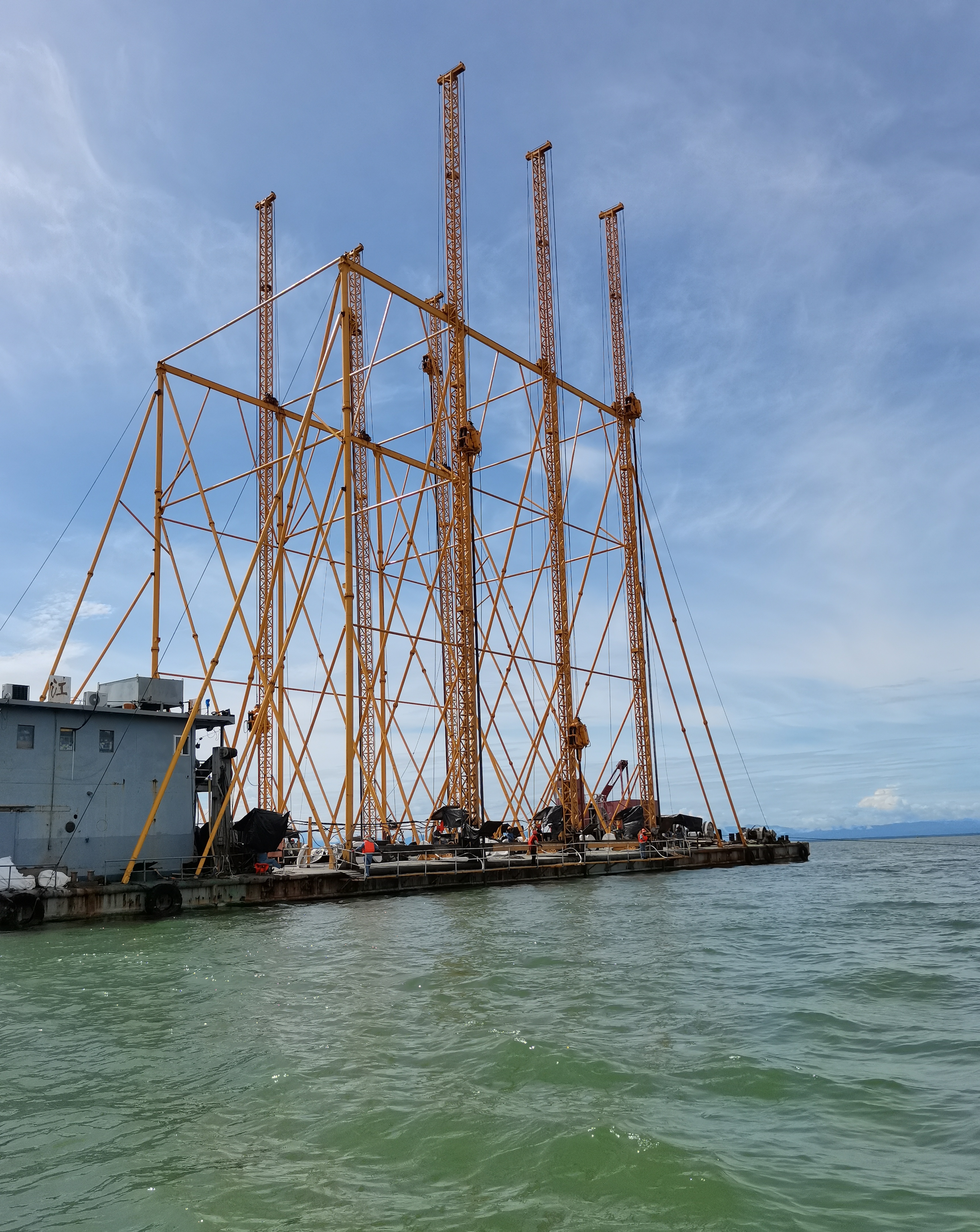 本項目主要是水上作業,在開工前,我們的7條工程船(海昌號、海旭號、海宏航工壹號、海宏航工貳號、海宏一號、海宏航工玖、海榮號)必須首先取得文萊海事局頒發的作業許可證(LTO)。LTO的獲取歷盡艱辛,文萊海事局官員上船對我們的每一條船都仔細檢驗,提出了多條整改意見,我們把所有整改意見消除后才獲得最終的LTO;但是第一次頒發的LTO周期都不長,最短的3個月,最長的半年,目前我們正在著手準備到期LTO的續簽工作。LTO獲取之后還要獲得文萊海事局頒發的NTM才可以正式施工,經歷了多輪審核審批我們最終才在8月21日獲得正式的NTM,項目才算真正意義開工了。