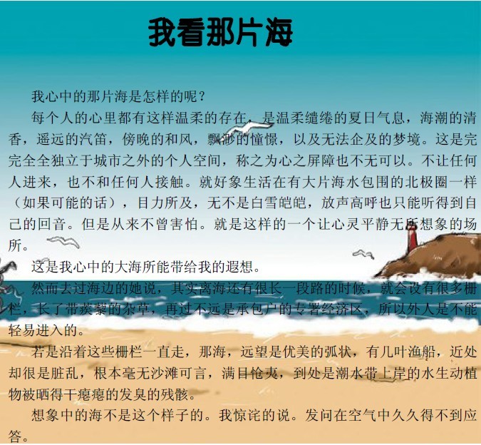 日期:2016-12-28 14:40:33 作者:【文學(xué)作品】我看那片海──財務(wù)部 施凱敏-江蘇海宏建設(shè)工程有限公司